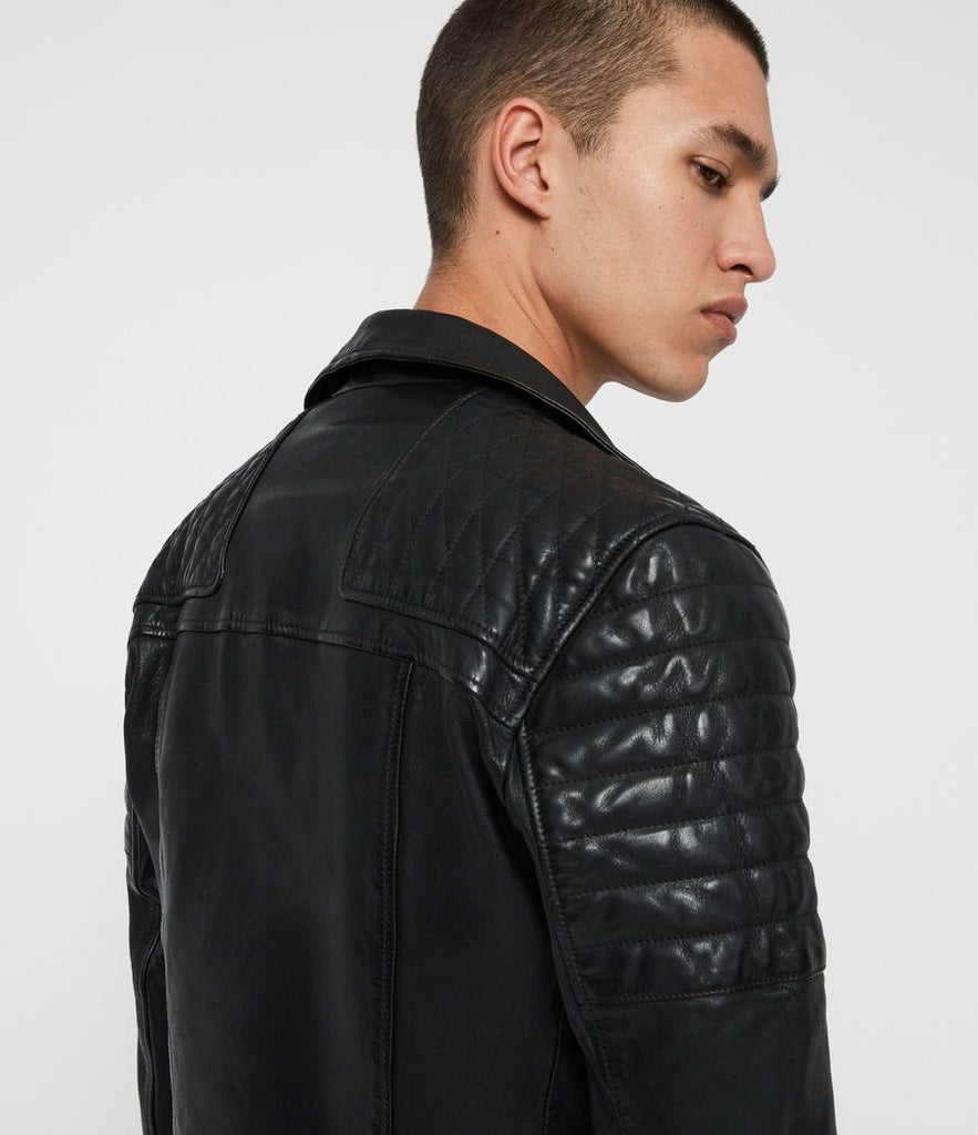 Bolt on. Our new biker jacket has been crafted from soft leather with quilted shoulder panels, echoing traditional motorcycle jackets. Metal hardware and a hip belt complete the classic aesthetic.