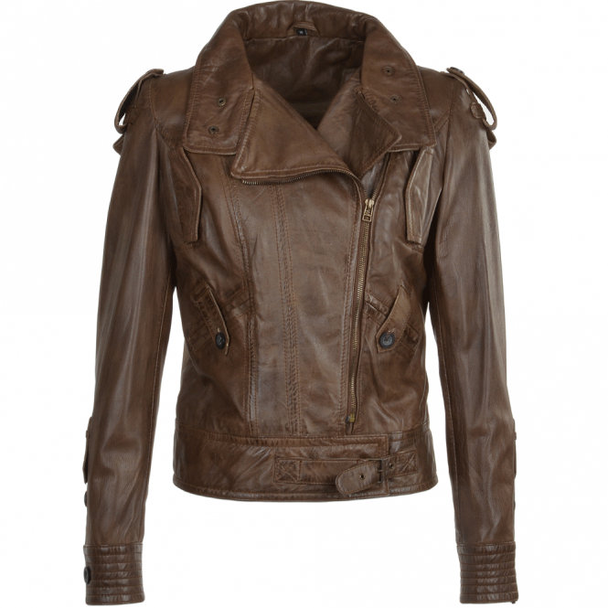 A brown vintage look fashion biker crafted from quality sheep hides, and whether it’s the classic smooth black, or the vintage wash and hand waxed effect found in the brown and cognac finish, you will come to  find there is no wrong way to wear the Milly  biker style leather jacket making it a smart wardrobe investment.