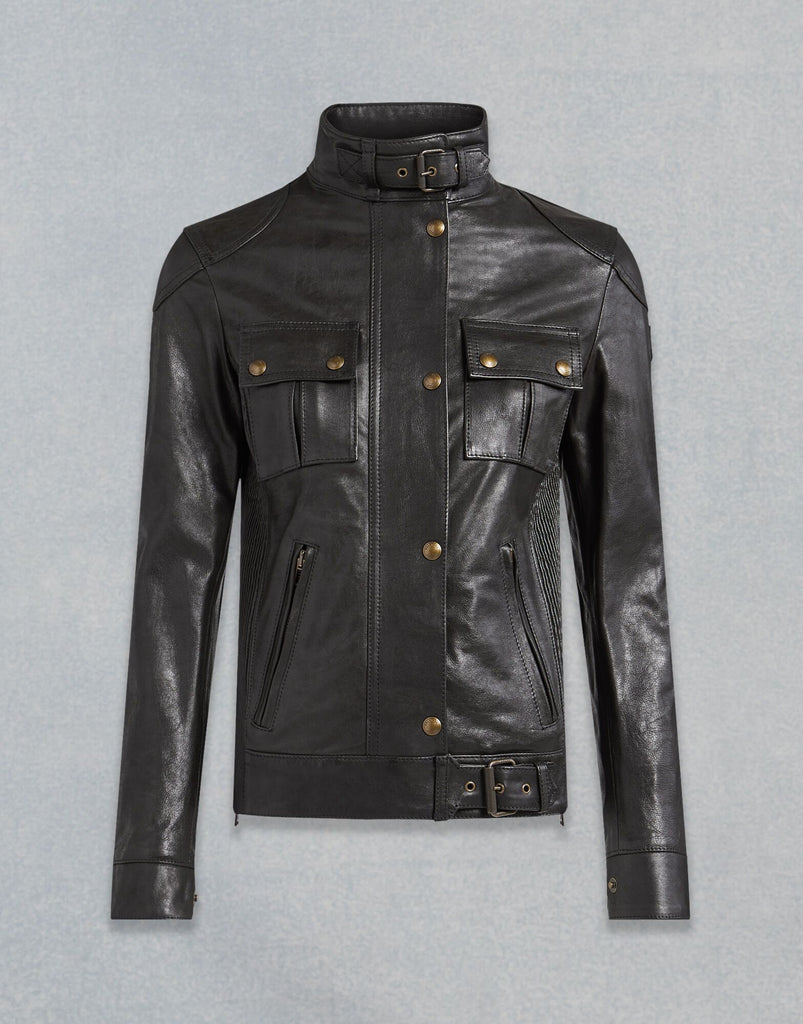 Originally introduced in 1969, the Gangster jacket, in black, is crafted from oiled and hand-waxed leather and has a unique depth of colour, due to Belstaff’s exclusive artisanal finishing, perfected over many years. The corrugated side panels bring a fitted shape to this classic biker style, while the detailing includes signature Belstaff cotton twill check lining, buckled throat latch and leather phoenix patch on the left sleeve.