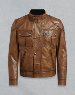This men’s classic café racer jacket, in cognac, is crafted from oiled and hand-waxed leather and has a unique depth of colour, due to Belstaff’s exclusive artisanal finishing, which also gives the Outlaw a durable, water repellent coating. With a classic press-stud closure to the collar and two side pockets with zip closures, the detailing also includes diamond stitch shoulder reinforcements and side tab adjusters for a custom fit.