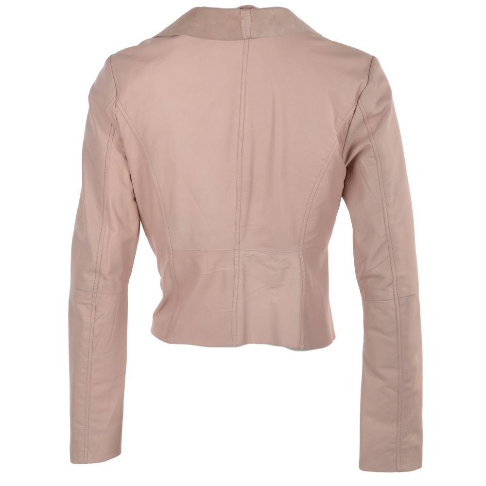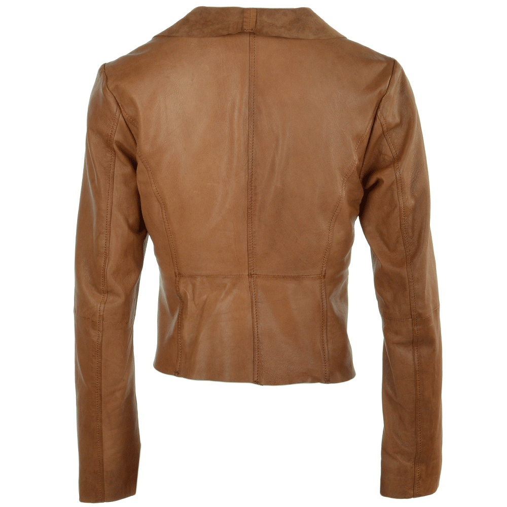 This light weight part lined with open natural skin on the outer lapels and internal body is perfect for summer days. A curvaceous short semi-cropped cut of the classic biker style jacket.  Smart styling with vintage exposed leather finishes for a modern designer biker look.
