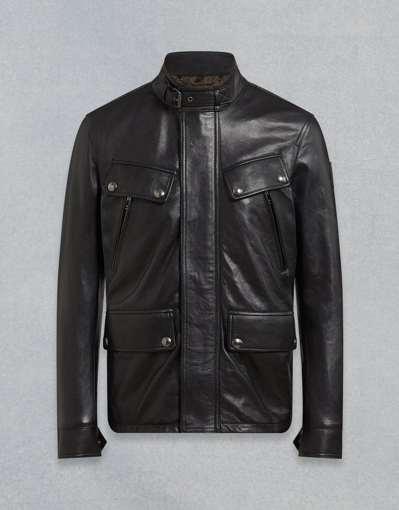This men’s jacket, in black, is crafted from lambskin leather. The Denesmere’s four-pocket silhouette with slanted map pocket on the chest nods to Belstaff’s iconic designs, while additional zip pockets sitting on the chest pockets add clever functionality. A jacket that balances practicality and classic design, the Denesmere has underarm vents to regulate airflow, a high stand collar with adjustable throat latch, and adjustable snap-button cuffs give comfort without compromising on style.