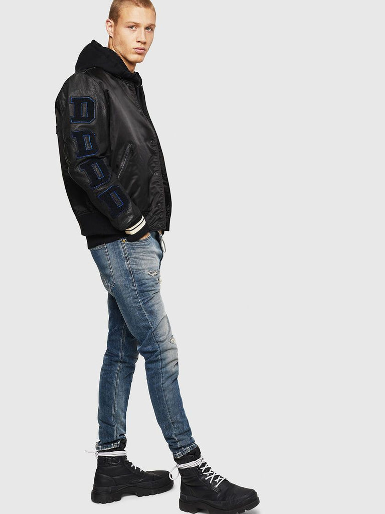 DIESEL L-KHARKOV Bomber jacket in nylon and leather
