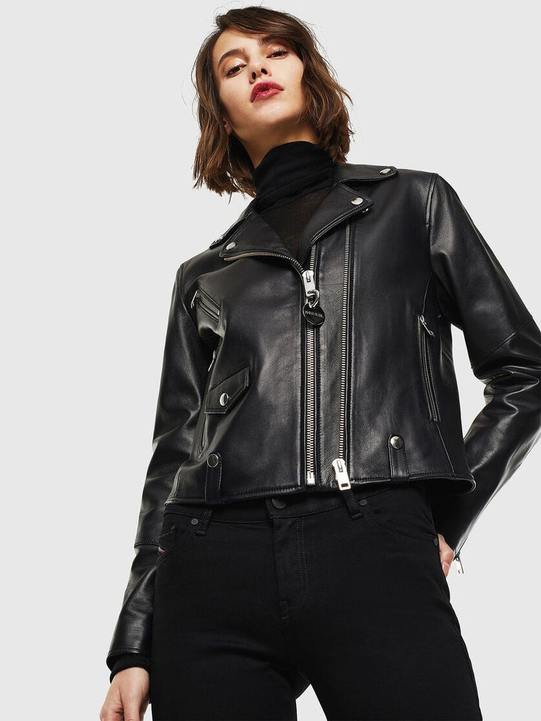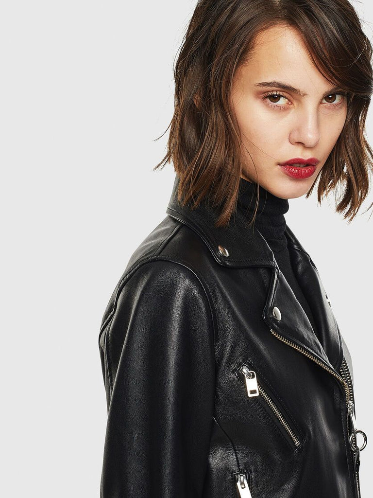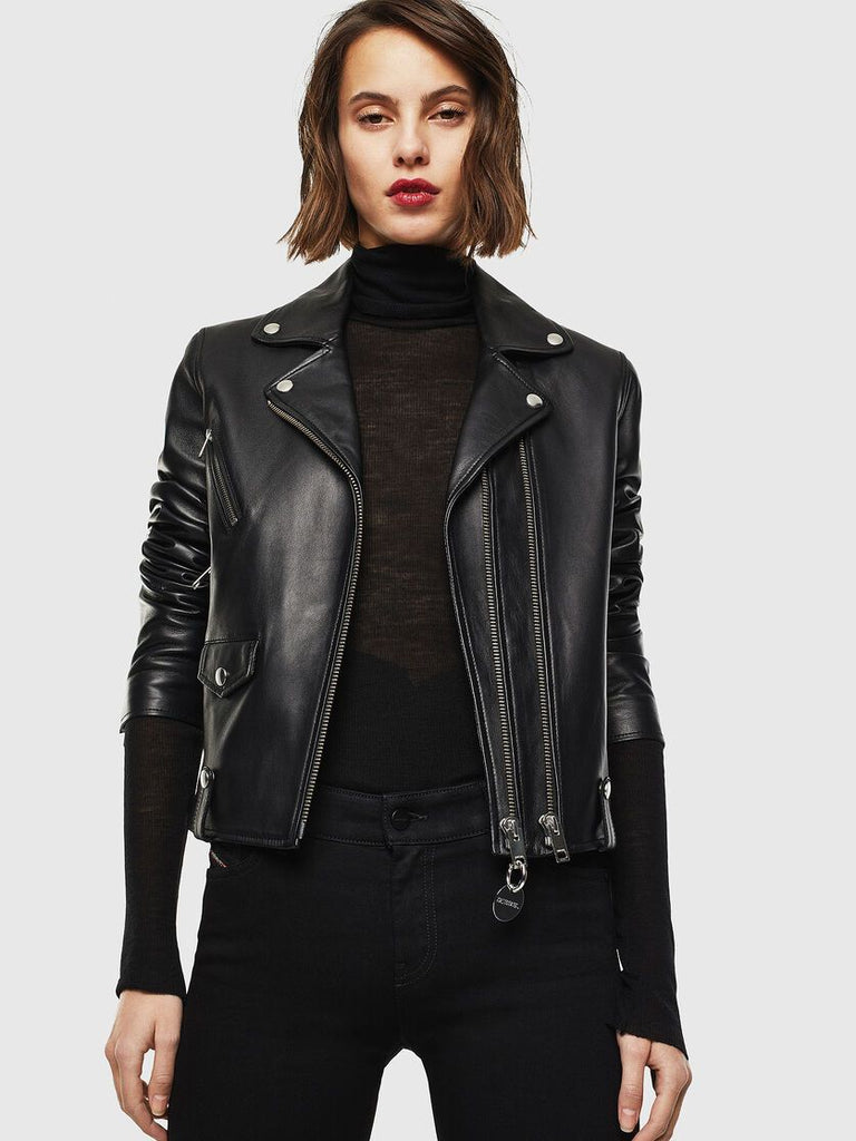 This biker jacket is crafted from light nappa leather. It fastens with twin zips on the front and features multiple pockets and zipped cuffs. The round metal zip puller completes the look.