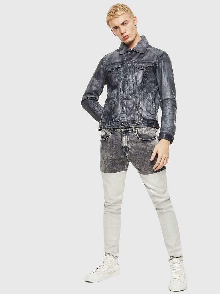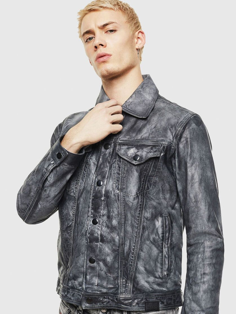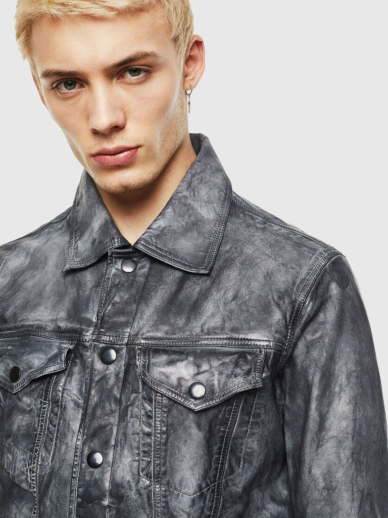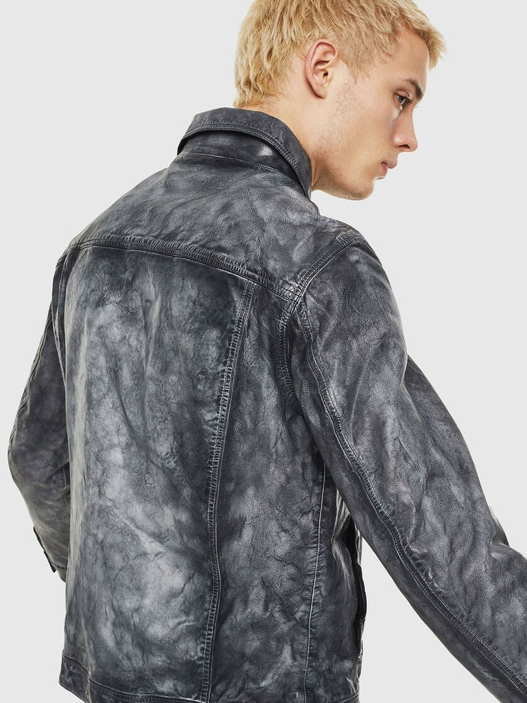 This trucker jacket is crafted from soft leather, hand-treated for a vintage effect with a shiny two-tone colour finish. Tonal jacquard label on the inside.