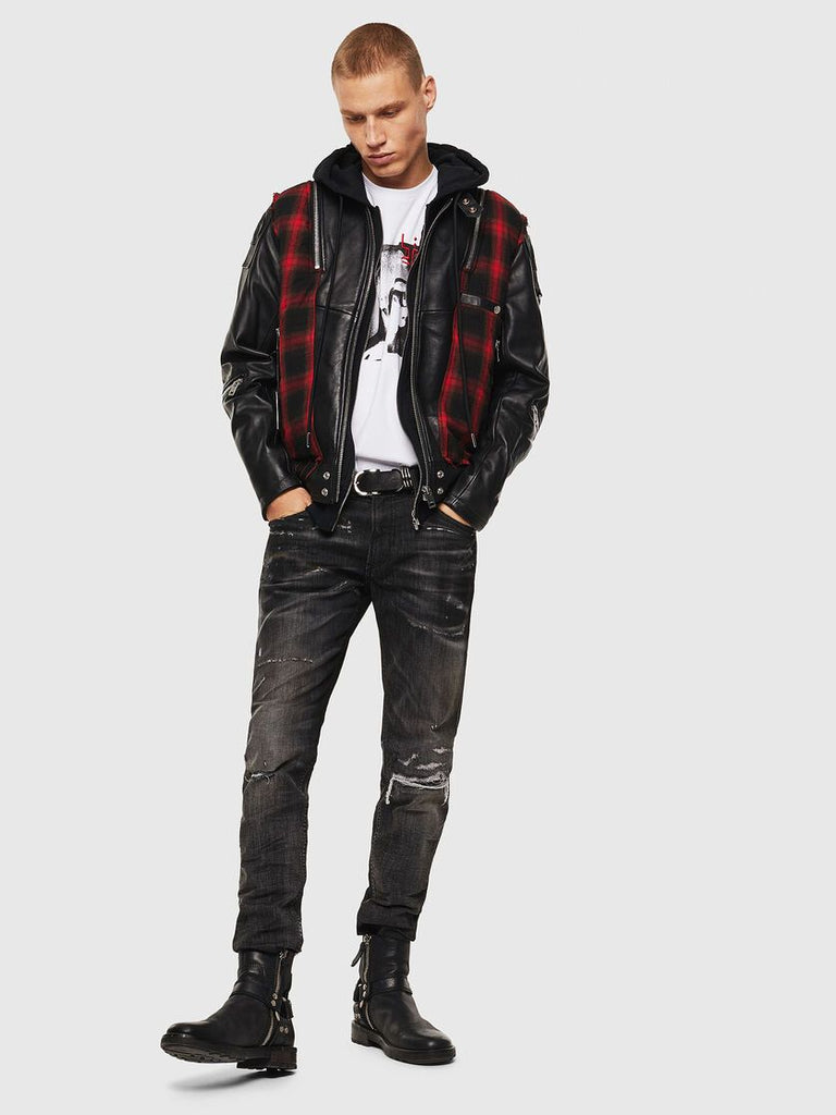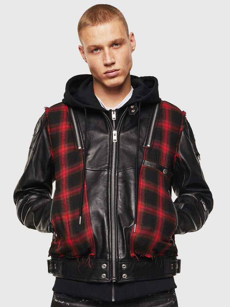 DIESEL L-NORMAN Leather jacket with triple-layer effect