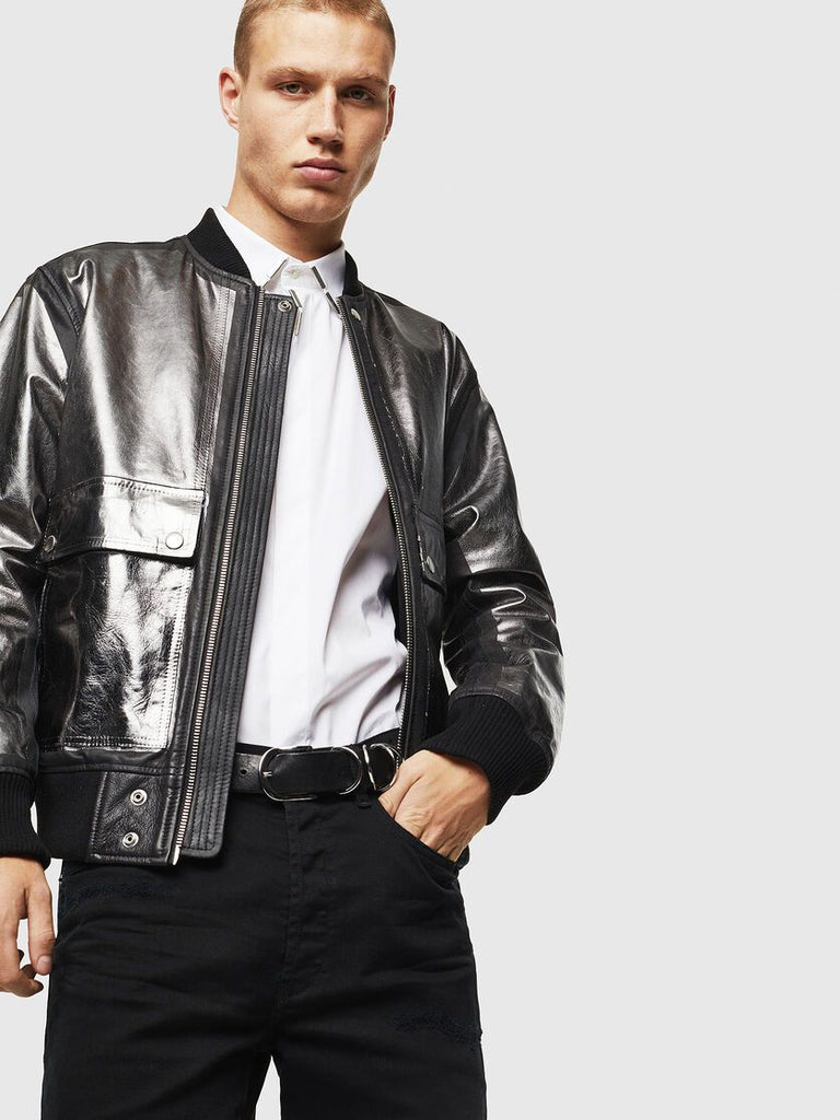 DIESEL L-STEWARD-FOIL Bomber jacket in metallic leather