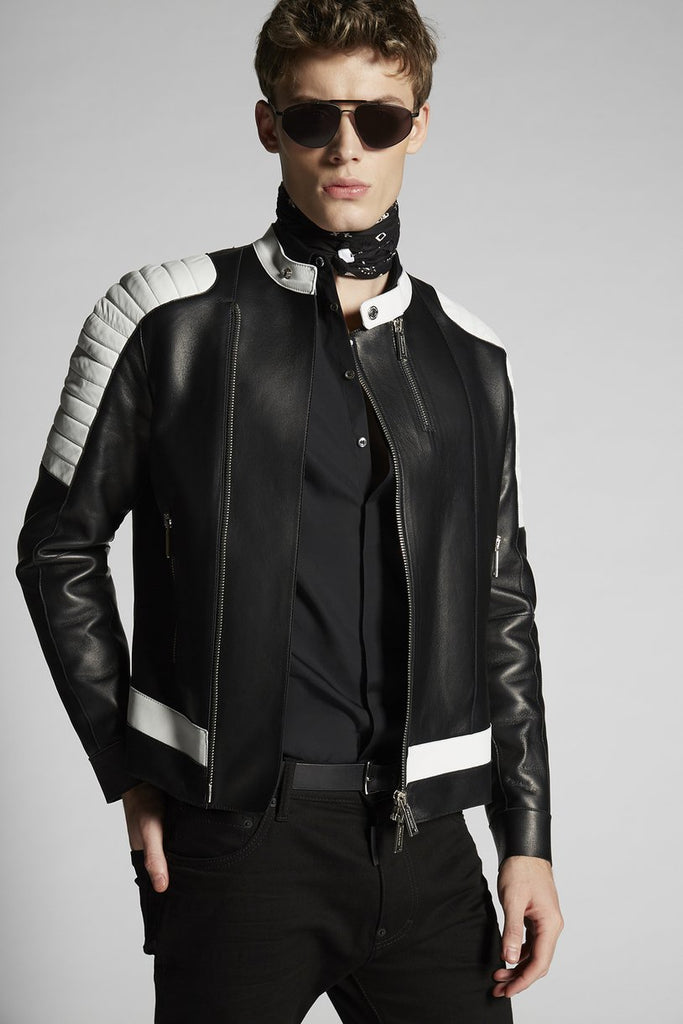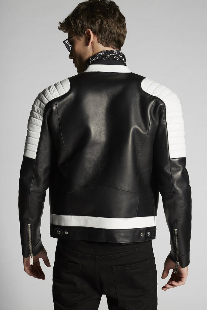 DSQUARED2 Dean Leather Biker Jacket With Contrasting Details