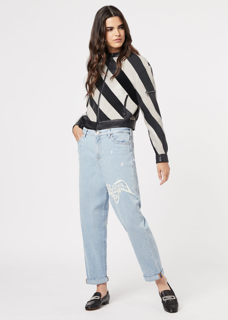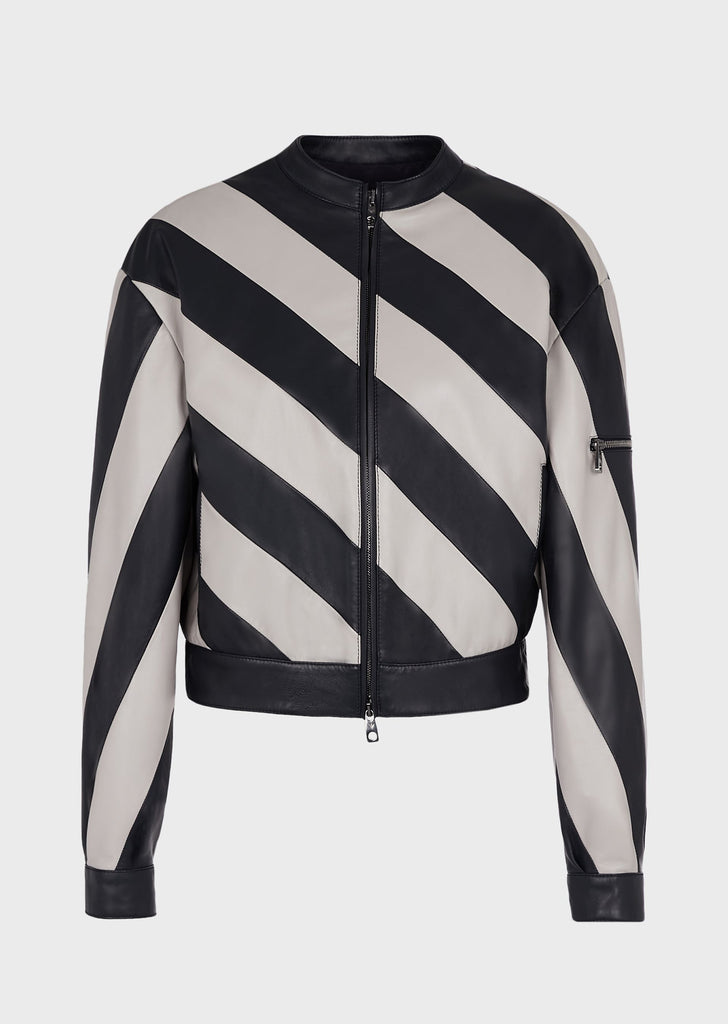EMPORIO ARMANI Glove-like lamb nappa leather bomber with two-tone bands