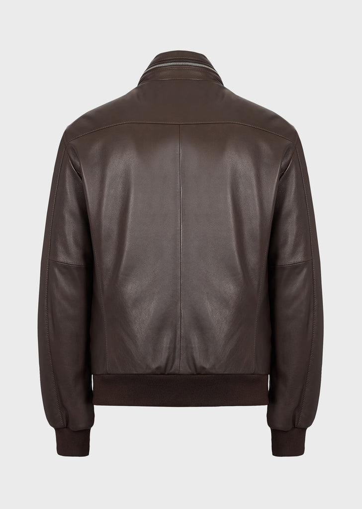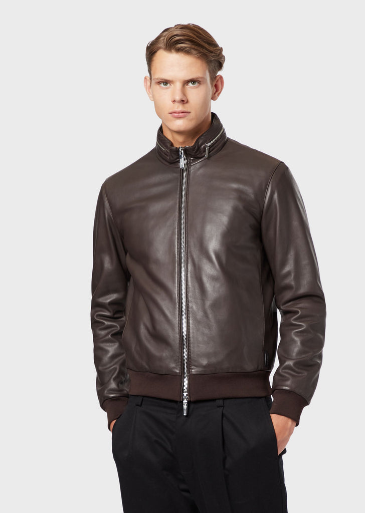 EMPORIO ARMANI  Nappa lambskin bomber Leather jacket with fold-away hood