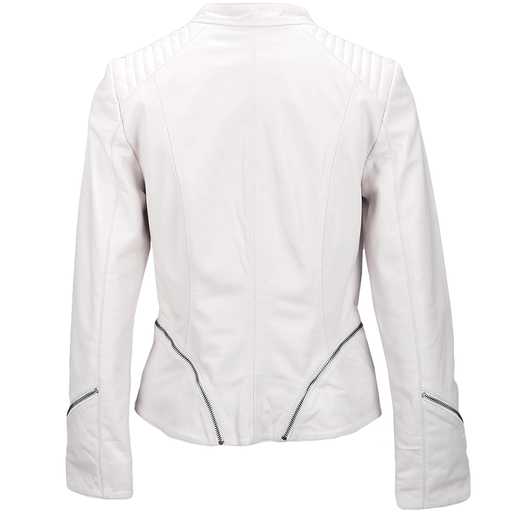 Handcrafted modern white biker in beautiful veg tanned eco friendly leather. With its simple clean lines, biker detailing, timeless styling, complete with a hand rubbed finish.  The Kiara ladies leather jacket is a must have for any woman looking for a wearable modern biker style jacket which can be worn with any type of apparel.