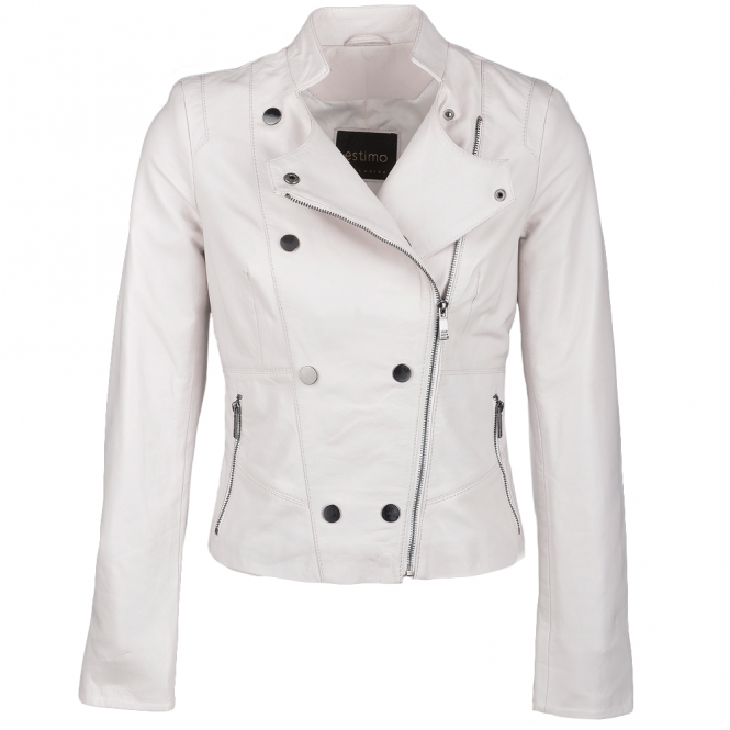 Ladies Vegetable Tanned Leather Biker Jacket White : Rosabel