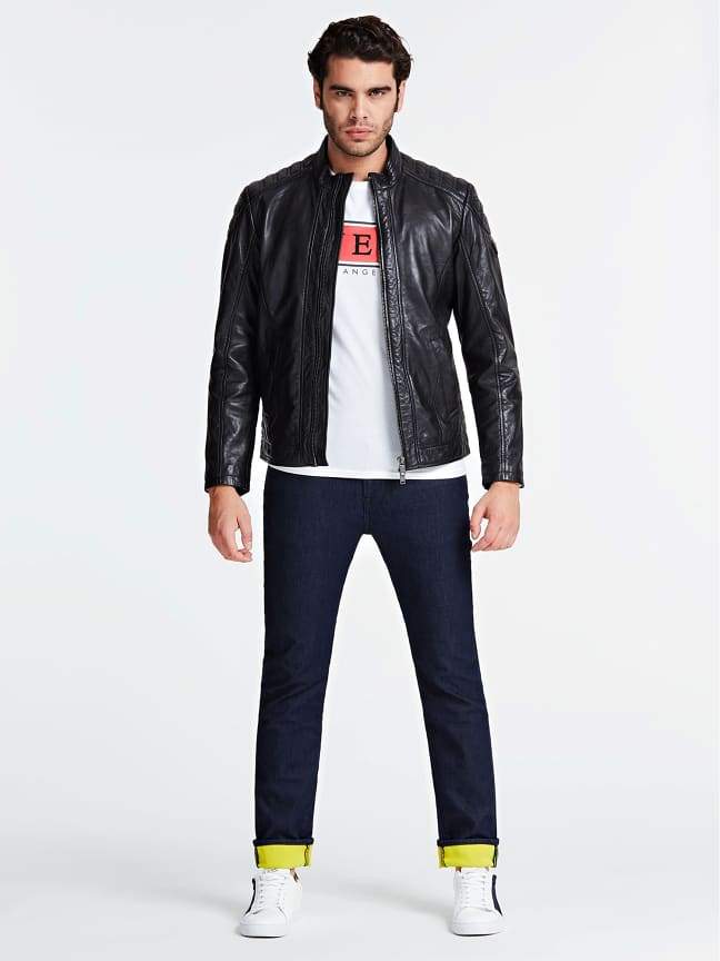 SHELL (main fabric): 100% Leather; BODY LINING: 100% Polyester; SLEEVE LINING: 100% Polyester.