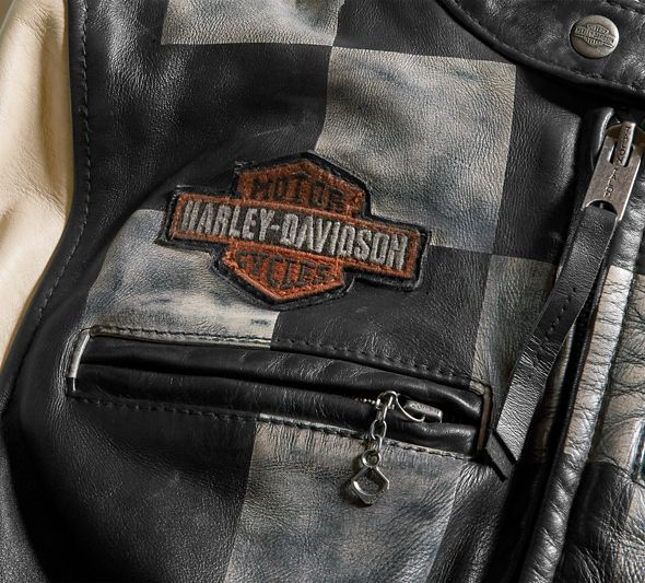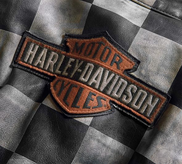 To wear the Vintage Race-Inspired Leather Jacket is like wearing history. It's built from washed leather for a decades-old feel and the distressed graphics look grungy with accumulated dust and smudge from years at the track. You'll especially appreciate the checkered art on this women's casual jacket. Not only does it have the credible look of custom, hand-painted art (it's actually a print), the image pays honor to our legendary race heritage. The iconic #1 is a historic detail referring to the Grand National Champ carrying the esteemed #1 bike plate the following season.