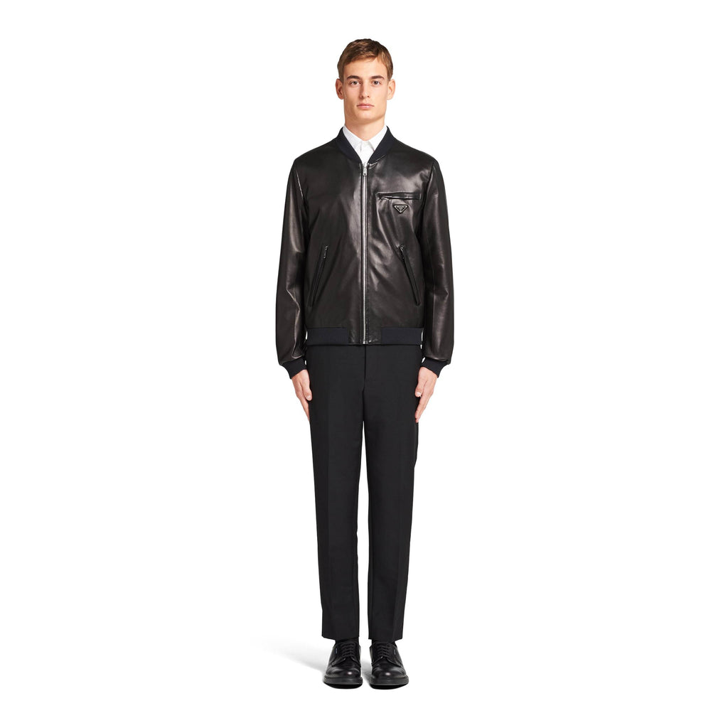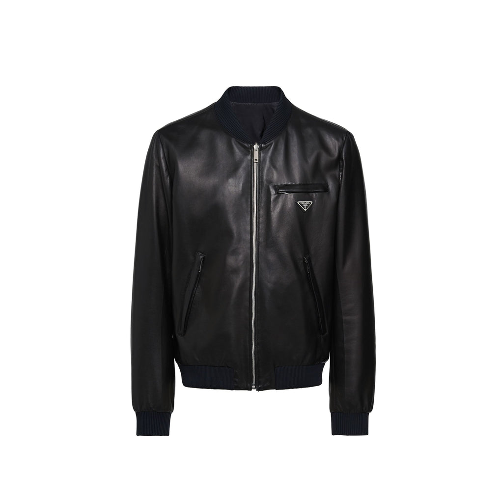 Breast pocket with hidden zipper and enameled metal triangle logo