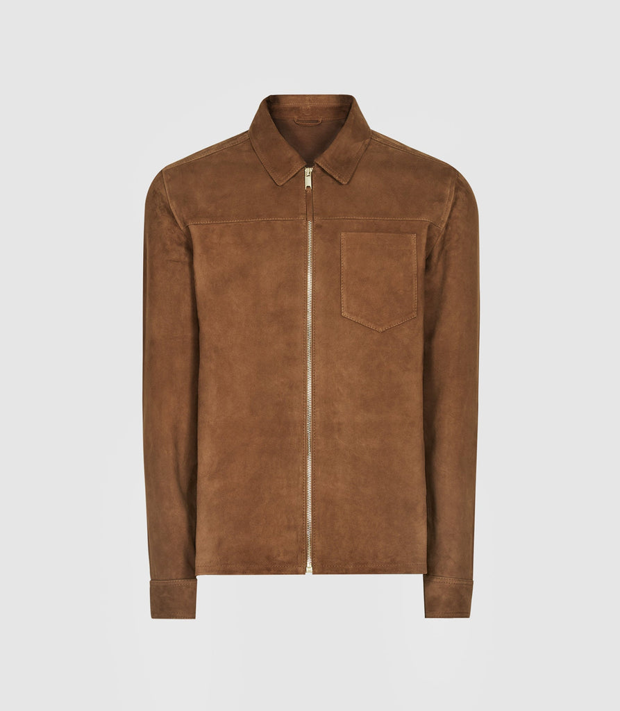 REISS MARLO SUEDE ZIP THROUGH JACKET TOBACCO
