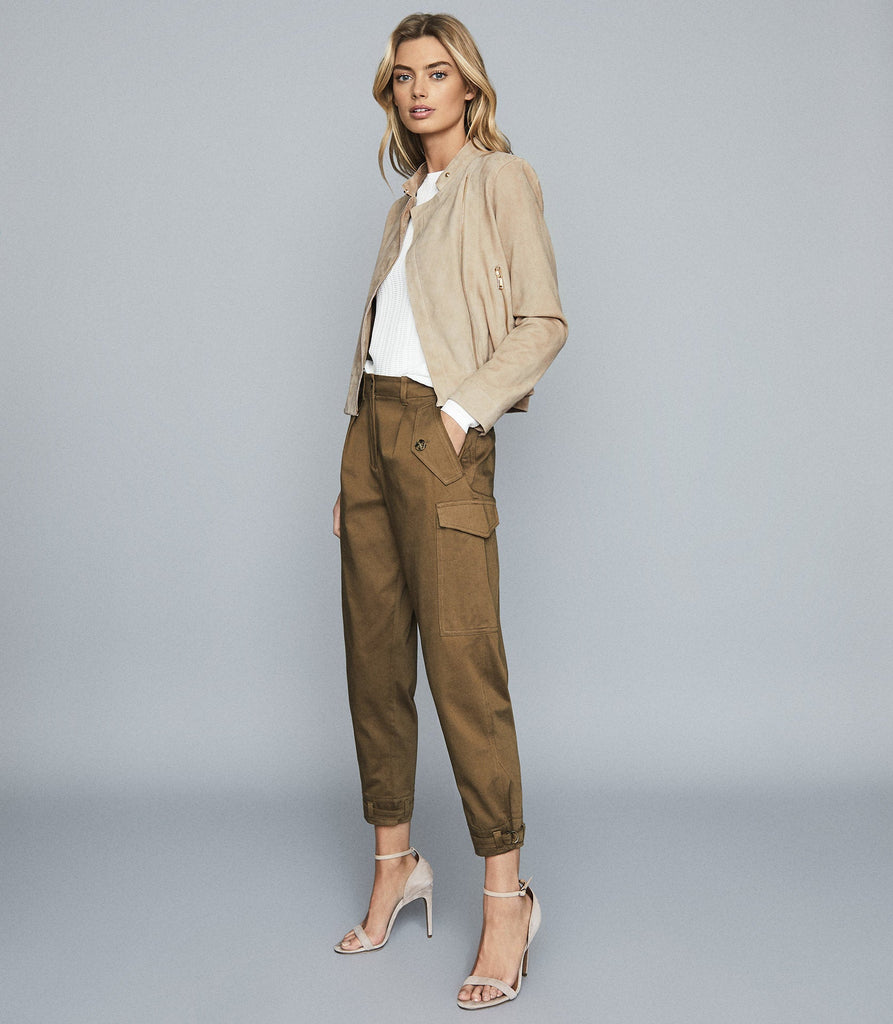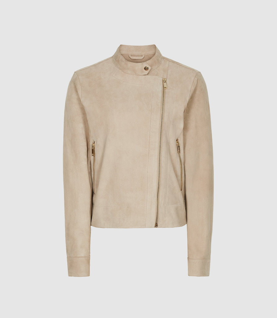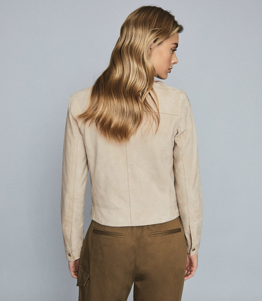 REISS OLIVIA SUEDE BIKER JACKET NEUTRAL