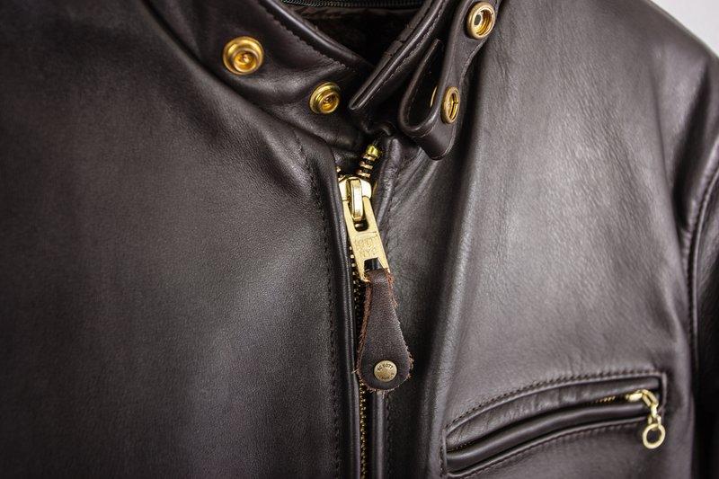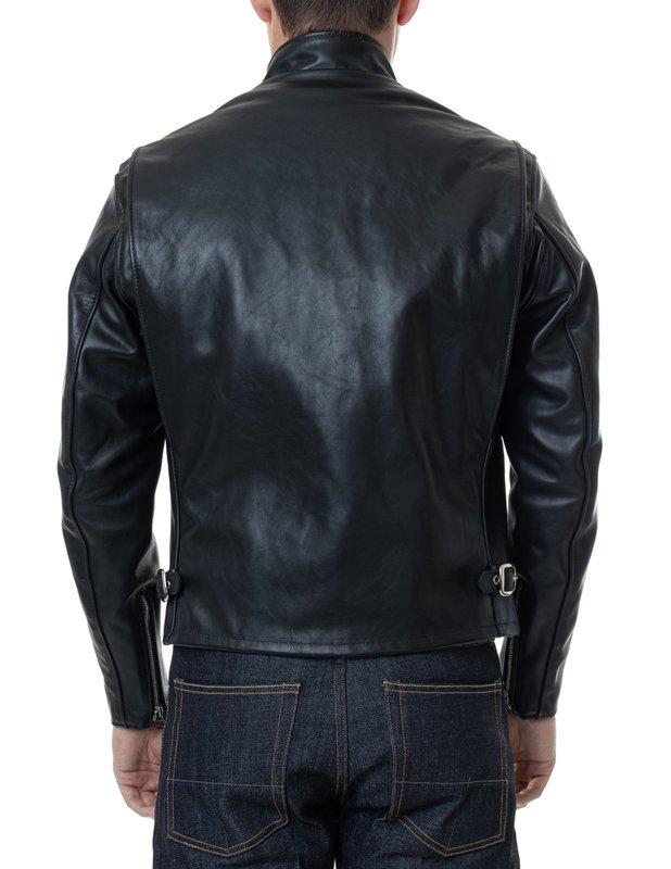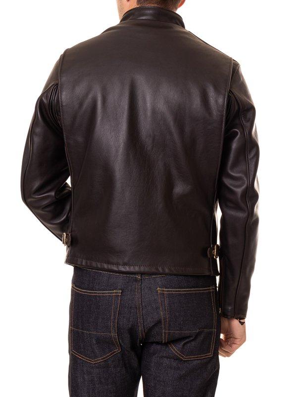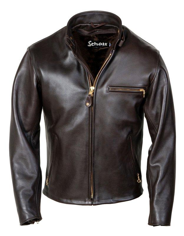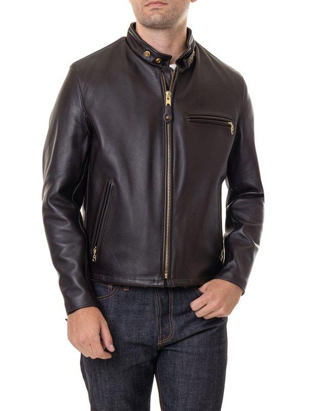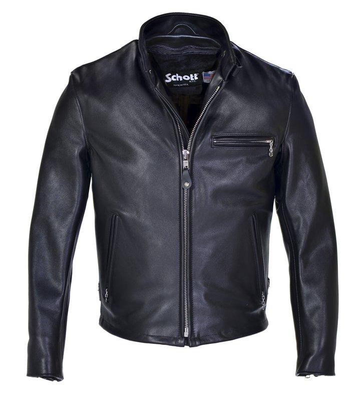 The Schott NYC model 141 is a true classic racer leather motorcycle jacket made from the finest naked cowhides. With its stand-up collar and its bi-swing back it always makes for a clean, perfect fit.