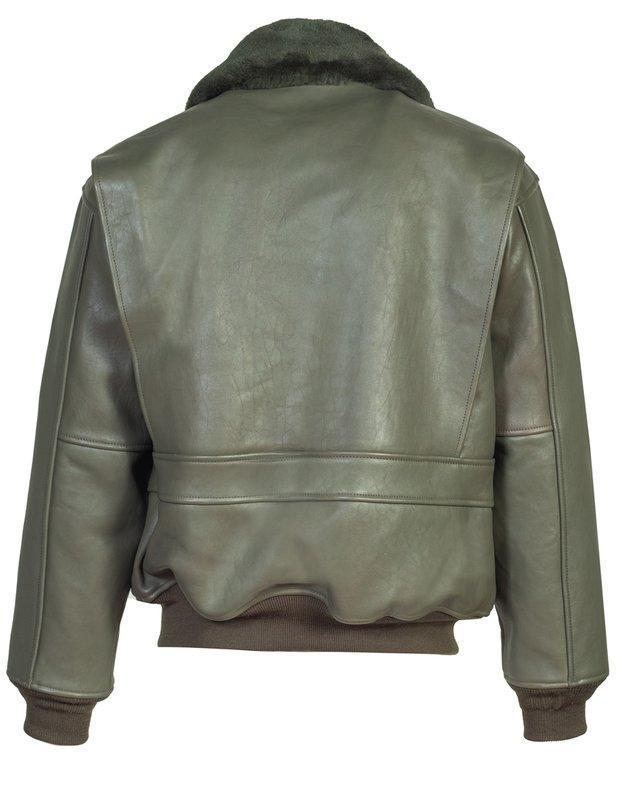 27" heavyweight lambskin "Wings of Gold" G-1 flight jacket with detachable sheepskin collar and printed satin lining.