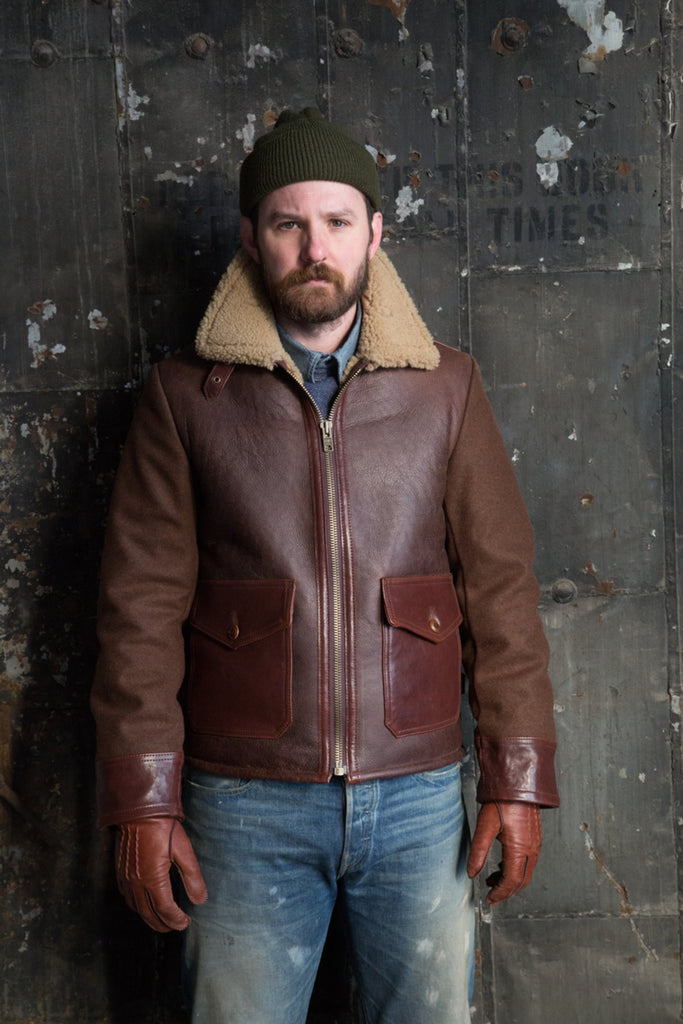 Men’s 27” flight jacket constructed from a durable combination of cowhide leather, wool, and sheepskin for an easy-fitting and dependable jacket.