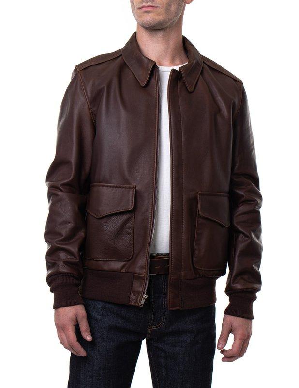 Schott NYC Waxed Natural Pebbled Cowhide A-2 Leather Flight Jacket